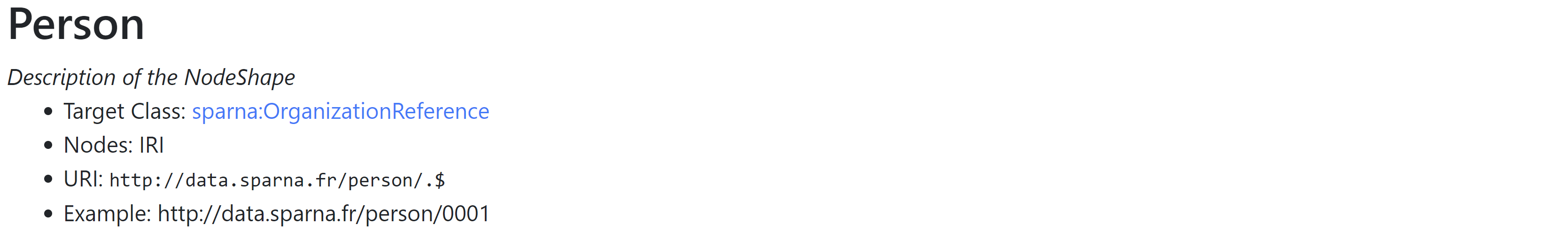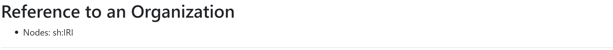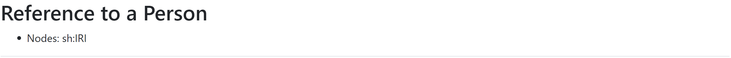 sh:IRI | No | If the NodeShape is also an instance of rdfs:Class, then its URI will be displayed under the section title. |