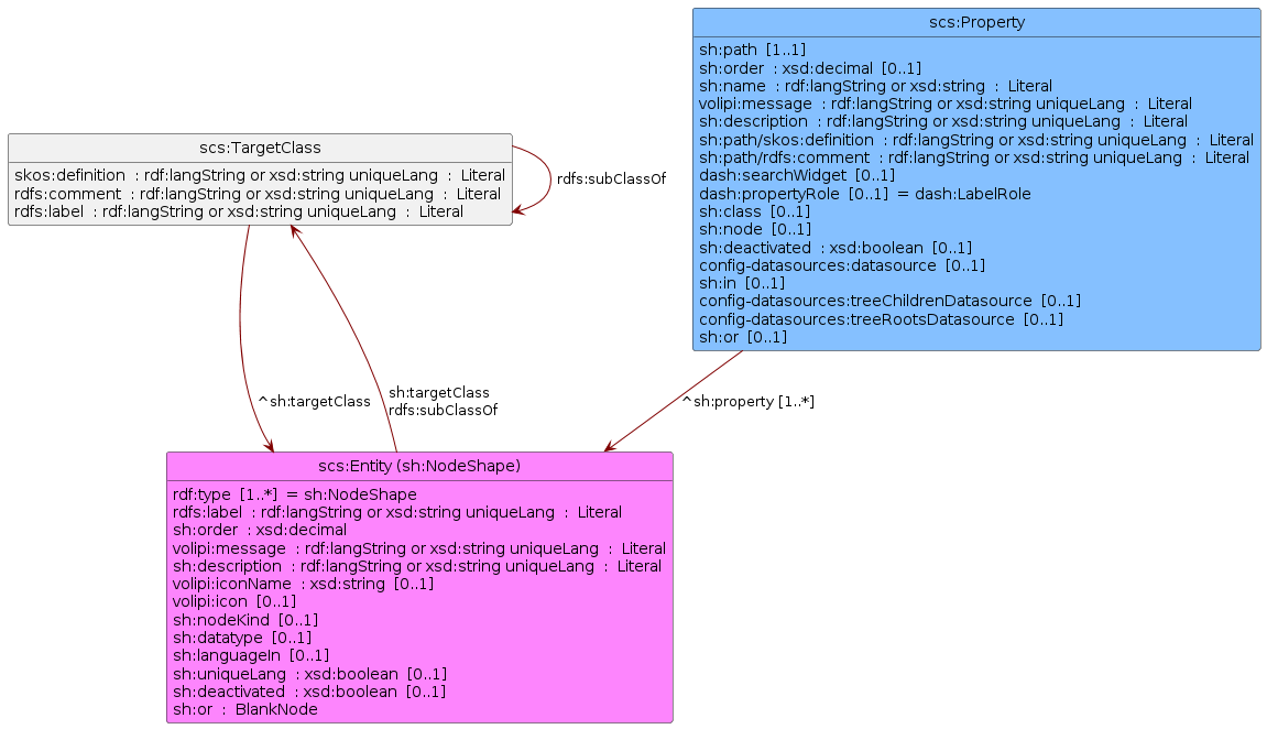 rdfs:subClassOf links are displayed in bold grey. It implies the NodeShapes are also classes, and it of course implies that the submitted